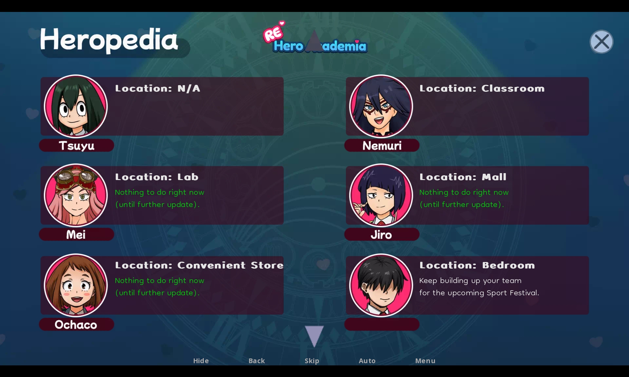 How do I progress in Tsuyu's mission? She says I have to talk to someone but there is no one to talk to and the only person who does says that it will only be possible in the next update